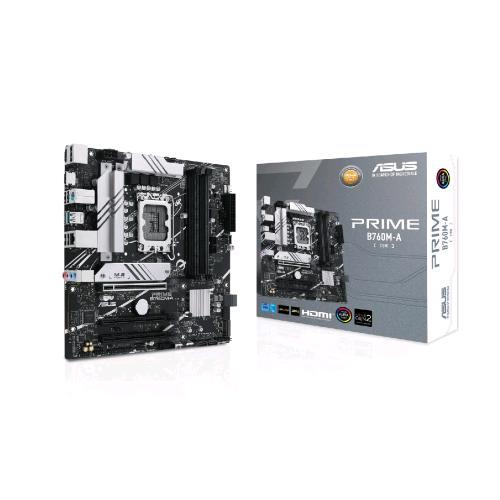 ASUS PRIME B760M-A-CSM. Produttore processore: Intel, Presa per processore: LGA 1700, Processori compatibili: Intel� Celeron�, Intel� Pentium� Gold, Intel� Core� i3, Intel� Core� i5, Intel� Core. Tipi di memoria supportati: DDR5-SDRAM, RAM massima supportata: 128 GB, tipo di slot di memoria: DIMM. Interfacce dell’unit� di archiviazione supportate: M.2, SATA III, Tipi di unit� di archiviazione supportate: HDD & SSD. Tipo di interfaccia Ethernet: 2.5 Gigabit Ethernet. Componente per: PC, Fattore di forma scheda madre: micro ATX, Famiglia di chipset per scheda madre: Intel.
