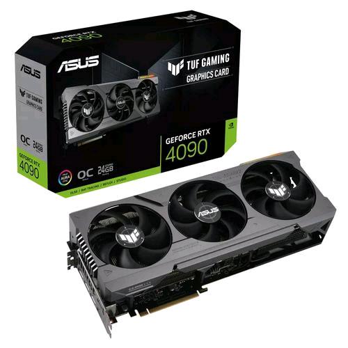 ASUS TUF Gaming TUF-RTX4090-O24G-GAMING. Processore grafico / fornitore: NVIDIA, Processore grafico: GeForce RTX 4090. Memoria Grafica Dedicata: 24 GB, Tipo memoria adattatore grafico: GDDR6X, Ampiezza dati: 384 bit. Risoluzione massima: 7680 x 4320 Pixel. Versione DirectX: 1?2 Ultimate, Versione OpenGL: 4.6. Tipo interfaccia: PCI Express 4.0. Tipo di raffreddamento: Attivo, Numero di ventole: 3 ventola(e), colore d’illuminazione: Blu, Verde, Rosso