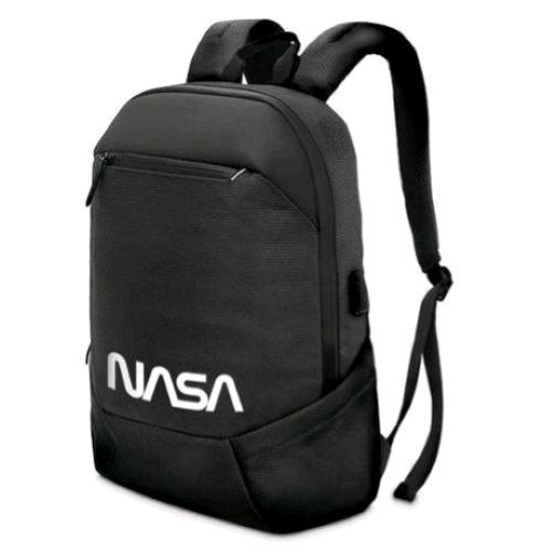 Zaino Atlantis “The Moon Project” logo NASA Worm. Zaino porta Notebook fino a 15.6″ completo di: vano interno ultra capiente porta documenti circa 25L, doppia tasca portaoggetti, portapenne, tasca frontale a Zip porta telefono e porta oggetti, tasche laterali elasticizzate per borraccia, bottiglia etc..Atlantis BackPack � inoltre provvisto di una porta USB esterna, con cavo prolunga interno, per collegarsi a qualsiasi Battery Bank. Dotato di spallacci imbottiti protettivi e poggia spalle imbottito. Il design ergonomico e la pratica colorazione nero si rendono questo zaino comodo, pratico ed elegante. In dotazione maniglia di trasporto e sistema di aggancio a trolley.