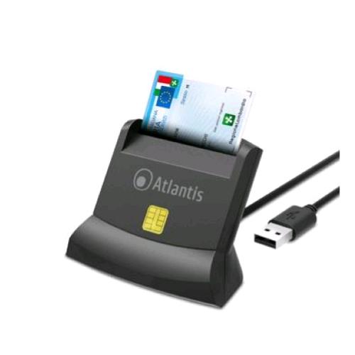 Il lettore Smart Card Atlantis consente di leggere ogni Smart Card per firme digitali, pagamenti on line, Carta Nazionale dei Servizi (CNS), Carta Regionale dei Servizi (CRS), Tessera Sanitaria, etc…, grazie alla piena compatibilit� con i principali standard come PC/SC, ISO-7816, T=0, T=1, FISC IC. Il dispositivo si collega tramite USB e non necessita di alimentazione esterna. Colore Nero.Non � richiesta alimentazione esterna.Carta Nazionale dei Servizi (CNS). Carta Regionale dei Servizi (CRS).Tessera sanitaria.Firma digitale.Home banking.Home shopping.Supporta Win 11/10/8.1/8/7.