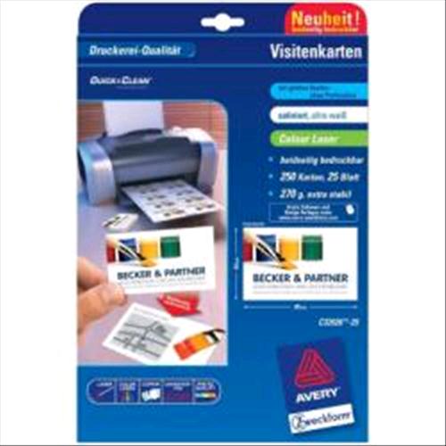 AVERY-ZWECKFORM C32026-25 CONF 250 BIGLIETTINI DA VISITA 84×54 MM PER STAMPANTI LASER/INKJET 270 GR/M2 BIANCO OPACO