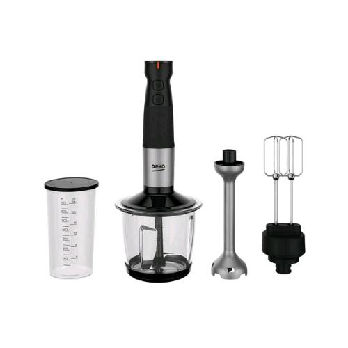 Beko HBA81762BX. Capacit� ciotola: 0,7 L, Tipo di controllo della velocit�: A gradini, Tipo di controllo: Leva. Tipo: Frullatore per cottura, Colore del prodotto: Acciaio inossidabile. Materiale della ciotola di miscelazione: Vetro, Materiale lama: Acciaio inossidabile. Potenza: 750 W, Alimentazione: AC. Larghezza: 60 mm, Profondit�: 60 mm, Altezza: 400 mm.Beko frullatore set HBA81762BX 750 W, 4 lame e asta in acciaio inox, bicchiere con capacit� 700ml, accessorio Tritatutto in vetro con 2 lame in acciaio inox, doppia frusta, colore nero.Beko frullatore ad immersione Set Sirius Line con 750w di potenza ed una capacit� di 700ml. Inclusi l’accessorio Tritatutto e le doppie fruste per avere il prodotto definitivo.Velocit� regolabile + funzione turbo: controllo manuale della velocit� per realizzare la consistenza perfetta per ogni tua ricetta; opta per la funzione turbo per avere il massimo della potenza.Vuoi realizzare una cremosa vellutata, mixare gli ingredienti per una torta o, addirittura, tritare finemente un p� di frutta secca? in dotazione troverai tutti gli accessori necessari.Impugnatura comfortevole: dettaglio ideato ed ingegnerizzato per offrirti un’esperienza pratica e ergonomica, senza rinunciare ad efficienza, potenza e velocit�.La Sirius Line di Beko � la linea pi� performante, dotata di un design elegante e dettagli esclusivi.