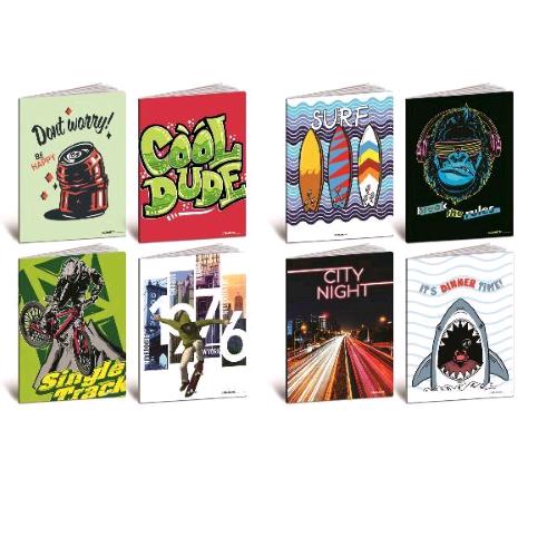 BOY (alta foliazione). Quaderno punto metallico, formato A4. 24 fogli + risguardo. Carta da 100 grammi. Copertina: cartoncino 240 gr. con verniciatura UV a zone.