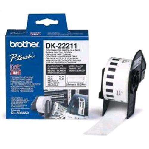 BROTHER DK-22211 NASTRO ADESIVO 29MMx15.24MT ADESIVO COLORE BIANCO STAMPA NERO