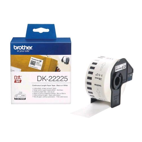 BROTHER DK-22225 ROTOLO ETIHETTE ADESIVE NERO BIANCO 38mm L 30.48 MT