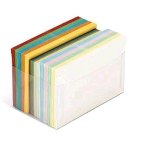 BUSTE DI CARTA TAGLIO A PUNTA 90X140 mm 90 GR COL. ASSORTITI CONF 100 Pz.+ 100 CARTONCINI DA 200 GR