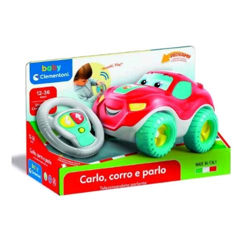 CLEMENTONI – CARLO CORRO E PARLO. Clementoni Carlo, corro e parlo una simpatica macchinina dotata di telecomando ergonomico ad infrarossi per guidarla a distanza. Premendo il tasto vicino all’alettone si pu attivare il pilota automatico ed inoltre attivare suoni, canzoncine e filastrocche per apprendere nuove parole. Carlo pu essere usata anche in modalit silenziosa. Dimensioni : 34x21x15h cm. Gioco elettronico parlante funzionante a batterie gi incluse.