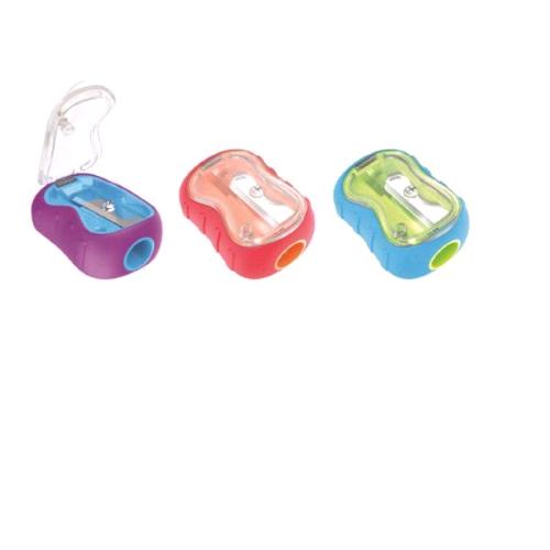 Temperamatite 1 foro, coperchio di sicurezza trasparente, rivestimento morbido ed ergonomico antiscivolo.