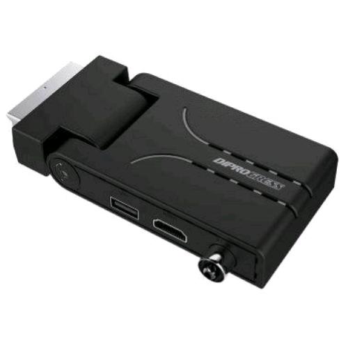 DPT202SD – DIPROGRESS Decoder DPT202SD SCART+HDMI Stick DVB-T2 HEVC MAIN 10 con Doppio Telecomando Ricevitore digitale Terrestre DVB-T2 H265/HEVC Main 10bit DPT202SD Scart Stick HDMI con Telecomando Universale per TV e Decoder + secondo telecomando EASY con funzioni principali TV. Telecomando Universale 2 in 1 per controllo TV + Decoder Un unico telecomando per controllare sia il televisore sia il decoder digitale. Ogni funzione e opzione nel palmo della tua mano. Sincronizzare il telecomando del decoder DiProgress con il tuo televisore semplicissimo! La parte evidenziata del telecomando sar quindi dedicata al controllo diretto del tuo televisore. Un unico telecomando per il massimo della semplicit. Secondo telecomando EASY con tasti grandi e comandi essenziali TV + Decoder Il doppio telecomando incluso permette il controllo del decoder nelle sue funzioni principali, nonch il controllo del televisore nelle funzioni di accensione/spegnimento TV e di selezione ingresso AV. Doppio Telecomando Tv+Decoder Riproduttore Multimediale via USB Multimedia logo DiProgress Inserisci la tua chiavetta USB oppure un Hard Disk esterno alimentato separatamente nel decoder e sfoglia nella libreria i tuoi file video, audio e immagine. Formati supportati: MKV, AVI, MP4, MP3 Audio, JPG e BMP per un?esperienza di visione a 360 gradi. Altre Caratteristiche Multilungua con teletext e sottotitoli. Ricerca canali automatica e manuale. LCN per ordinamento automatico dei canali. Aggiornamento lista canali automatico in stand-by. Uscita HDMI Full HD + Connessione SCART per TV tradizionali. Aggiornamento automatico via etere.