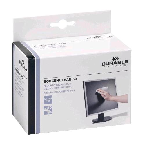 DURABLE SCREEN CLEAN 50 SALVIETTE MONOUSO UMIDIFICATE PER LA PULIZIA DI SUPERFICI SINTETICHE O IN PLASTICA ANTISTATICHE E PRIVE DI ALCOOL TASCABILI 50 PEZZI