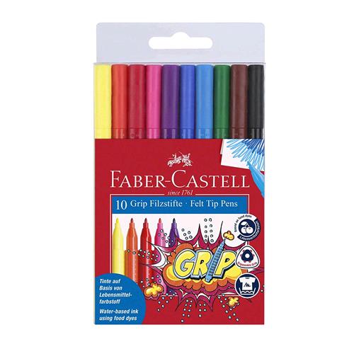 FABER CASTELL GRIP PENNARELLI LAVABILI ATOSSICI PUNTA FINE COLORI ASSORTITI CONF. 10 Pz.