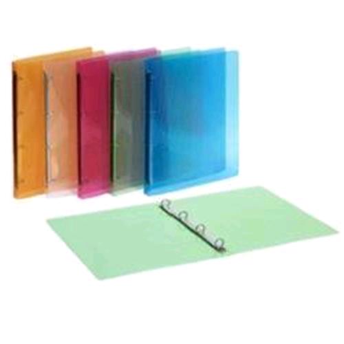 RACCOGLITORI AD ANELLI LUMINA. Realizzati in polipropilene trasparente colorato con speciale finitura rigata. Formato interno 22×30 cm, formato esterno 26×32 cm. Meccanismo a 4 anelli tondi 15mm
