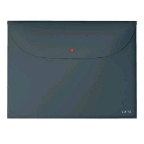 LEITZ COSY BUSTA CON BOTTONE IN PP 313X235 mm A4 2 TASCHE GRIGIO CONF 3 Pz.