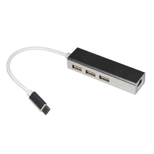 Adattatore USB-C maschio con presa rete RJ45 10/100 + HUB 3 porte USB 2.0.Plug and Play.Questo adattatore aggiunge una porta di rete Ethernet 10/100 a un dispositivo senza porta di rete come un netbook o un notebook, tramite una porta USB Type C, permettendo il collegamento a una rete via cavo. Inoltre aggiunge 3 porte USB 2.0 per il collegamento di tastiere, mouse, lettori card e altri dispositivi USB.E’ molto utile nel caso si debba connettere un tablet, notebook o altro dispositivo con porta USB-C a una rete cablata, e usare per esempio la tastiera, il mouse, o altri dispositivi USB.Plug and Play con Windows XP/Vista/7/8/8.1/10, Max OS X 10.6/10.7/10.8/10.9/10.10 e Linux OS. Design compatto, non necessita di alimentazione esterna, ideale per uso mobile.Input: connettore USB-C MaschioOutput: connettore RJ45 femmina + 3 porte USB femmina tipo “A”.