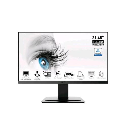 MSI Pro MP223. Dimensioni schermo: 54,5 cm (21.4″), Risoluzione del display: 1920 x 1080 Pixel, Tipologia HD: Full HD, Tecnologia display: LED, Tempo di risposta: 1 ms, Rapporto d’aspetto nativo: 16:9, Angolo di visualizzazione (orizzontale): 178?, Angolo di visualizzazione (verticale): 178?. Montaggio standard VESA. Colore del prodotto: Nero.