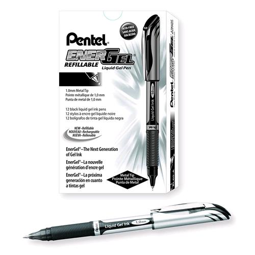 PENTEL ENERGEL XM PENNA ROLLER INCHIOSTRO GEL NERO PUNTA CONICA 1 mm CONF 12 Pz.