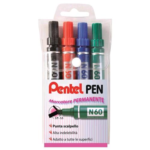 PENTEL N60 MARCATORE PERMANENTE PUNTA A SCALPELLO 3.90/5.50 mm COL. ASSORTITI CONF 4 Pz.