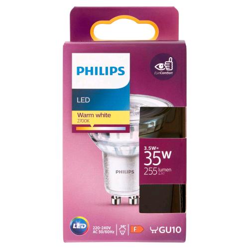 PHILIPS FARETTO LED IN VETRO GU10 3.5 W EQUIVALENTI 35 W 255 LUMEN BIANCO CALDO 2.700K