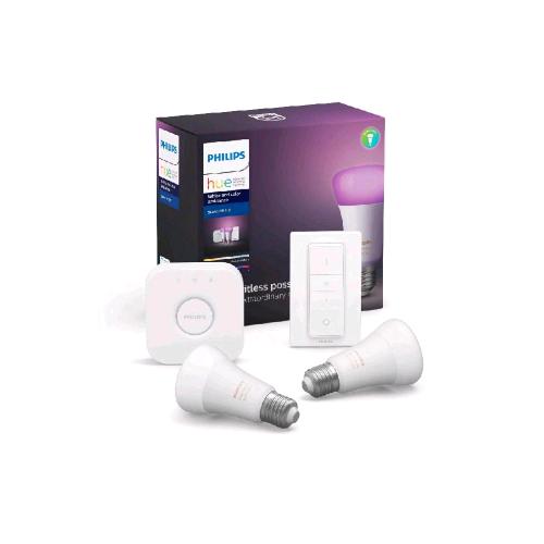 PHILIPS HUE WHITE AND COLOR AMBIANCE STARTER KIT SET PER ILLUMINAZIONE WIRELESS 1 X BRIDGE HUE 1 X DIMMER SWITCH 2 X LAMPADINA LED E27 9 W A+ 16 MILIONI DI COLORI 2000-6500 K BIANCO