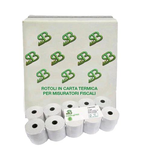 Rotoli omologati per registratore di cassa SABAPLUS – carta termica LONGLIFE – BPFREE – FSC. Altezza 57 mm, lunghezza 30 metri, foro 12 – confezione da 10 rotoli