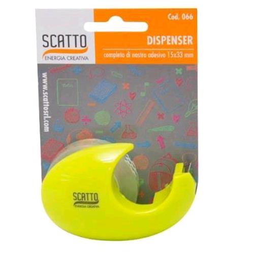 DISPENSERCON NASTRO. Dispenser chiocciola completo di nastro adesivo. Colori assortiti. Dimensione nastro 15mmx 33 cm. Dimensione dispenser 9×6