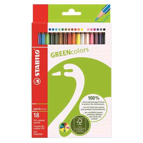 STABILO GREEN colors. PASTELLI IN LEGNO CON LA COSCIENZA PULITA. ECOLOGICO: il suo corpo in legno certificato FSC* e le scatole di cartone riciclato ne fanno un prodotto rispettoso dell’ambiente al 100%. QUALIT: mina resistente, facile da temperare e ricca di pigmenti. SICUREZZA: il fusto in vernice opaca atossica; ogni pastello certificato CE.