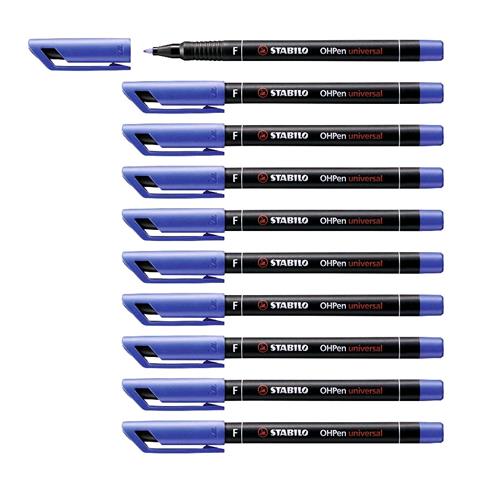 STABILO OHPEN FINE PENNA RICARICABILE PUNTA IN FIBRA 0.7 mm COLORE BLU CONF. 10 Pz. Stabilo OHPen universal permanente: Nato come pennarello per lucidi da proiezione diventato ora il pennarello indelebile tascabile pi usato da tutti: a scuola (per esempio per scrivere sugli zaini!), a casa (per esempio per scrivere sui sacchetti del freezer), al lavoro (per esempio per scrivere sui vetri e sui pacchi). Indelebile. Scrive su tutte le superfici lisce. 3 ampiezze di tratto (Superfine, Fine e Media). Tascabile. Ricaricabile. 8 colori. Cappuccio ventilato anti-soffocamento.