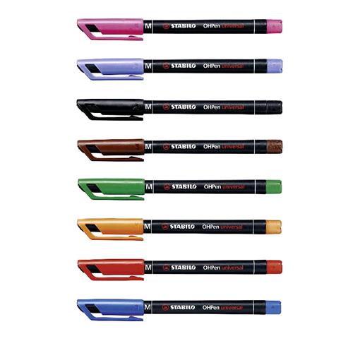 STABILO OHPEN MEDIA PENNA RICARICABILE PUNTA IN FIBRA 1 mm COLORI ASSORTITI CONF. 8 Pz. Stabilo OHPen universal permanente: Nato come pennarello per lucidi da proiezione diventato ora il pennarello indelebile tascabile pi usato da tutti: a scuola (per esempio per scrivere sugli zaini!), a casa (per esempio per scrivere sui sacchetti del freezer), al lavoro (per esempio per scrivere sui vetri e sui pacchi). Indelebile. Scrive su tutte le superfici lisce. 3 ampiezze di tratto (Superfine, Fine e Media). Tascabile. Ricaricabile. 8 colori. Cappuccio ventilato anti-soffocamento.