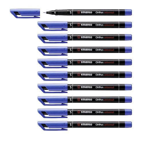 STABILO OHPEN SUPERFINE PENNA RICARICABILE PUNTA IN FIBRA 0.4 mm COLORE BLU CONF. 10 Pz. Stabilo OHPen universal permanente: Nato come pennarello per lucidi da proiezione diventato ora il pennarello indelebile tascabile pi usato da tutti: a scuola (per esempio per scrivere sugli zaini!), a casa (per esempio per scrivere sui sacchetti del freezer), al lavoro (per esempio per scrivere sui vetri e sui pacchi). Indelebile. Scrive su tutte le superfici lisce. 3 ampiezze di tratto (Superfine, Fine e Media). Tascabile. Ricaricabile. 8 colori. Cappuccio ventilato anti-soffocamento.
