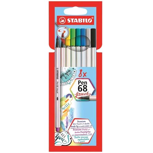 STABILO PEN 68 BRUSH PENNARELLO PUNTA A PENNELLO COLORI ASSORTITI CONF 8 Pz.