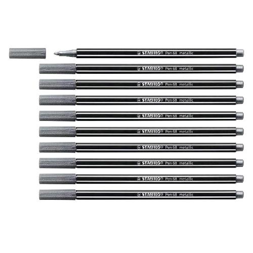 STABILO PEN 68 METALLIC PENNARELLO PUNTA MEDIA ARGENTO METALLIZZATO CONF 10 Pz.