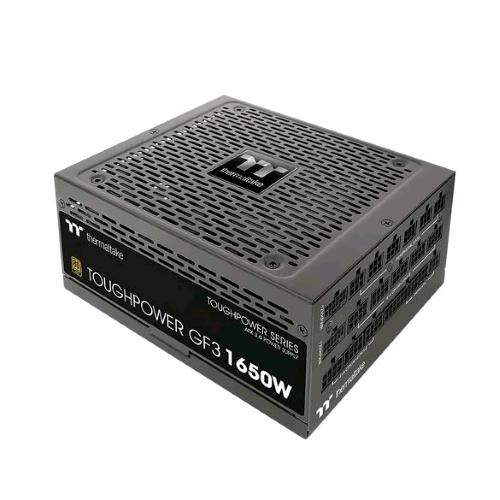 Thermaltake Toughpower GF3. Potenza totale: 1650 W, Tensione di ingresso AC: 100 – 240 V, Frequenza di ingresso AC: 50/60 Hz. Connettore scheda madre: 24-pin ATX, Lunghezza del cavo di alimentazione della scheda madre: 60 cm, Lunghezza del cavo di alimentazione SATA: 600,750,900,1050 mm. Utilizzo: PC, Certificazione 80 PLUS: 80 PLUS Gold, Tecnologia dei cuscinetti: HDB. Colore del prodotto: Nero, Diametro del ventilatore: 14 cm, Numero di ventole: 1 ventola(e). Larghezza: 150 mm, Profondit: 180 mm, Altezza: 86 mm.