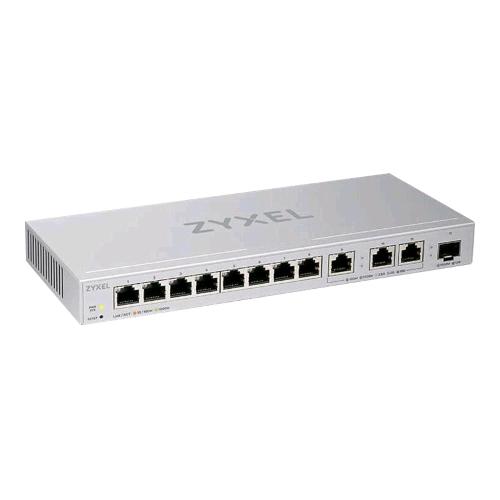 Zyxel XGS1250-12. Tipo interruttore: Gestito. Tipo di porte RJ-45: 10G Ethernet (100/1000/10000), Quantit di porte RJ-45: 11, Quantit di moduli SFP+ installati: 1. Full duplex. Dimensioni tavola MAC: 16000 voci, Capacit di commutazione: 96 Gbit/s. Standard di rete: IEEE 802.3,IEEE 802.3ab,IEEE 802.3ae,IEEE 802.3an,IEEE 802.3az,IEEE 802.3u,IEEE 802.3x. Connettore di alimentazione: Jack DC-ingresso